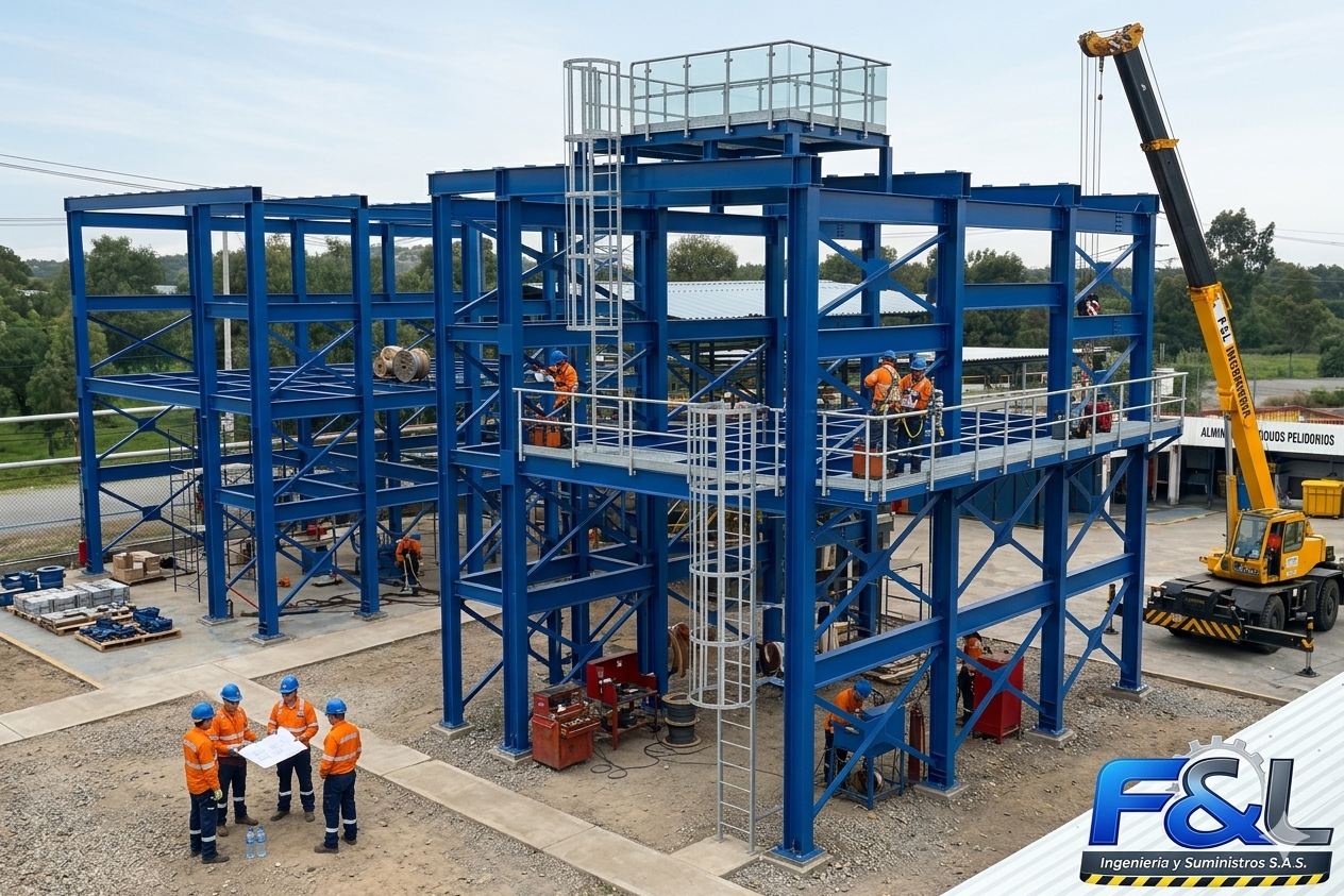 En F&L INGENIERIA Y SUMINISTROS S.A.S. Somos expertos en fabricaciones metalmecánicas, Estructuras Metalicas montajes y mantenimiento mecánico industrial especializado. Garantizamos la continuidad operativa y la integridad de sus activos bajo los más altos estándares de excelencia técnica, seguridad y cumplimiento normativo